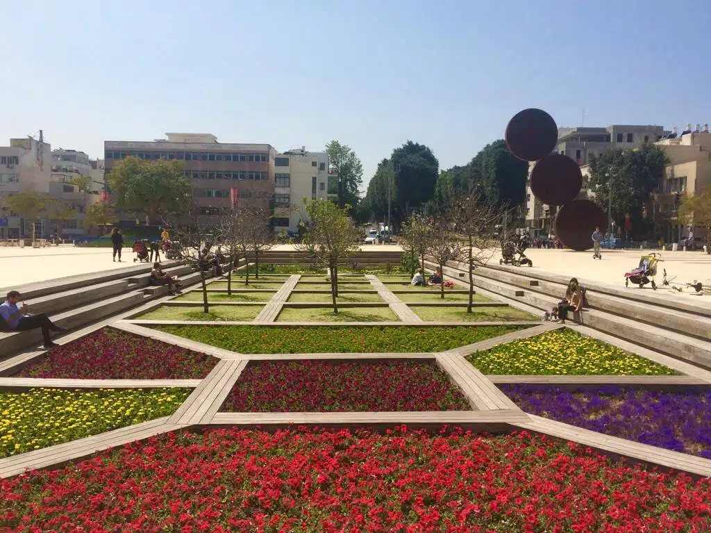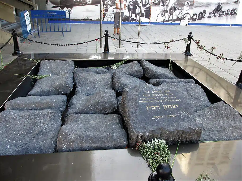 1995.november 4-én, miután Tel-Aviv főterén hatalmas tüntetést tartottak kormánya békepolitikájának támogatására, Yitzhak Rabint meggyilkolták a városháza előtt. Egy évvel később Rabin emlékművét azon a helyen állították fel, ahol megölték. A Yael Ben-Artzi szobrászművész által készített emlékmű 16, a Golán-fennsíkról származó bazaltkőből készült, amelyek a földbe süllyesztve jelképezik Rabin gyökereit és a földhöz való mély kötődését.